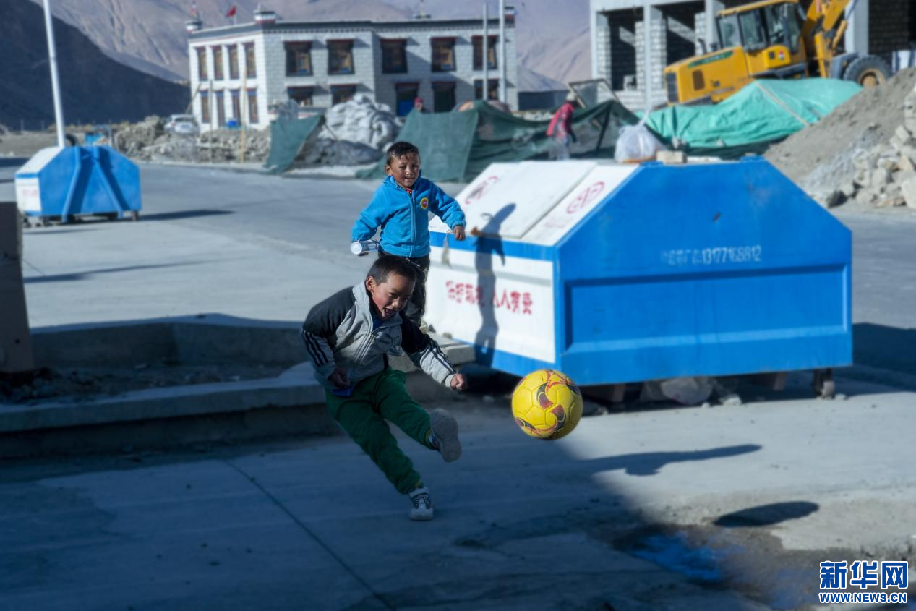 5月13日,在西藏定日縣扎西宗鄉(xiāng)巴松村,學(xué)生放學(xué)后踢球。新華網(wǎng) 旦增努布 攝
