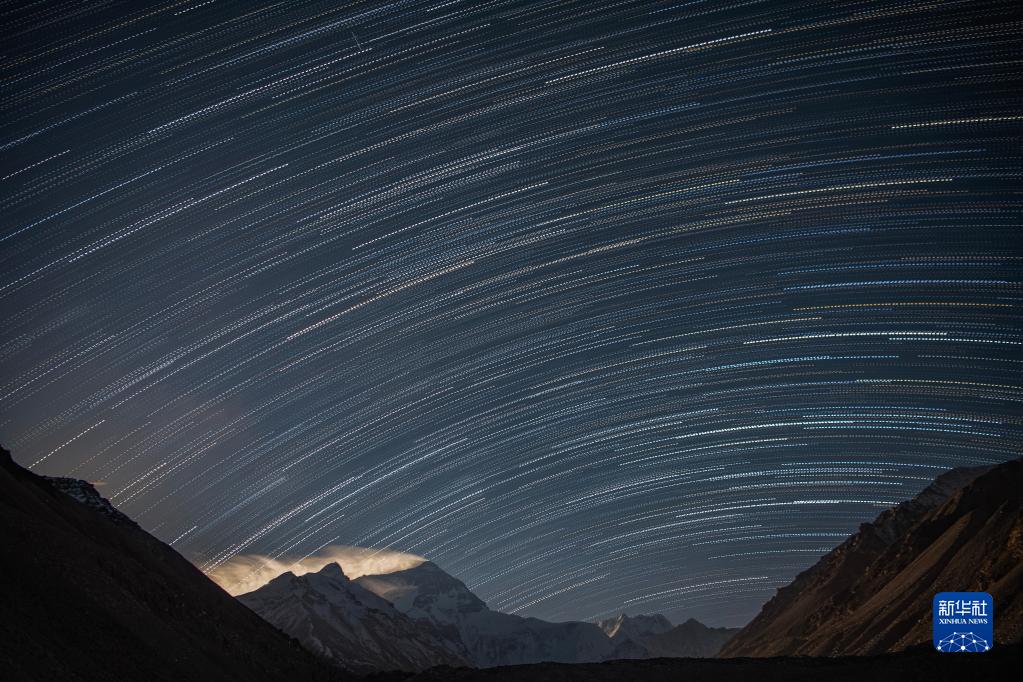 這是5月10日凌晨在珠峰大本營拍攝的星軌(合成照片)。新華社記者 孫非 攝