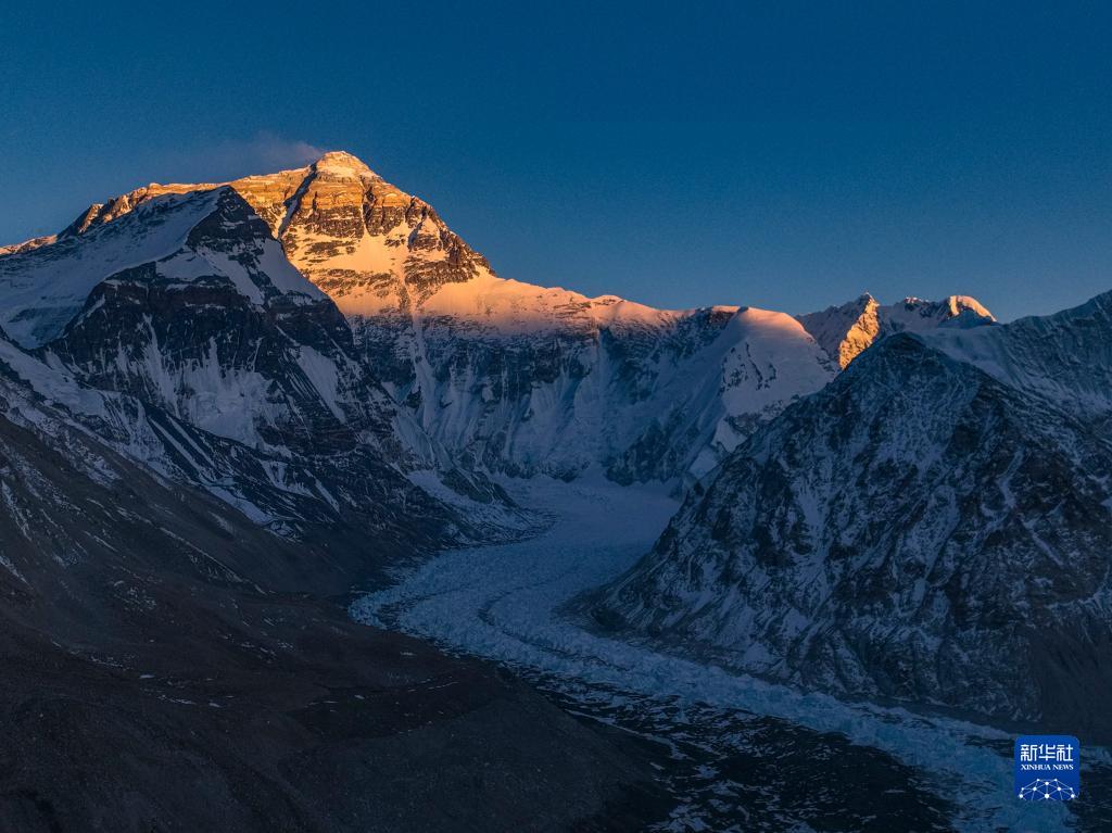 這是5月16日日落時分拍攝的珠穆朗瑪峰(無人機(jī)照片)。新華社記者 晉美多吉 攝
