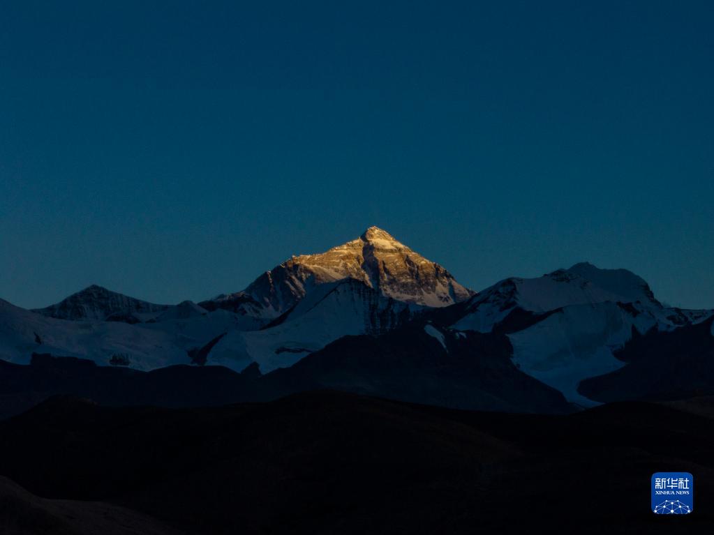 這是5月11日日落時分拍攝的珠穆朗瑪峰(無人機(jī)照片)。新華社記者 孫非 攝