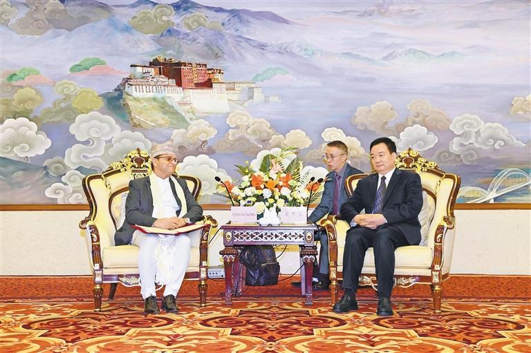 王君正指出,在中尼關(guān)系不斷深化的大背景下,雙方合作取得長(zhǎng)足進(jìn)展,在互聯(lián)互通、經(jīng)貿(mào)合作、人文交流等領(lǐng)域成果斐然。開放的經(jīng)濟(jì)最有活力,開放的地區(qū)最具有競(jìng)爭(zhēng)力,我們將認(rèn)真貫徹落實(shí)習(xí)近平主席訪尼重要成果和兩國(guó)領(lǐng)導(dǎo)人達(dá)成的重要共識(shí),積極執(zhí)行黨中央外交方針和對(duì)尼政策,發(fā)揮自身區(qū)位優(yōu)勢(shì),把西藏的發(fā)展開放同促進(jìn)中尼關(guān)系繁榮發(fā)展緊密結(jié)合起來,積極參與中尼高質(zhì)量共建“一帶一路”,在中尼航線、口岸建設(shè)、產(chǎn)業(yè)園區(qū)、基礎(chǔ)設(shè)施建設(shè)等領(lǐng)域與尼方加強(qiáng)溝通合作,構(gòu)建跨喜馬拉雅立體互聯(lián)互通網(wǎng)絡(luò),在加快構(gòu)建新發(fā)展格局、推動(dòng)高水平對(duì)外開放上邁出更大步伐,為中尼關(guān)系深入發(fā)展作出西藏貢獻(xiàn)。希望蒂米爾西納主席一行以參加第五屆藏博會(huì)為契機(jī),更加深入了解社會(huì)主義現(xiàn)代化新西藏的新成就新風(fēng)貌,領(lǐng)略雪域高原的獨(dú)特魅力,把一個(gè)更加繁榮、更加開放的中國(guó)西藏,全面、客觀、真實(shí)地介紹給尼泊爾民眾和國(guó)際社會(huì),讓世界更好地了解西藏、讓西藏更快地走向世界。