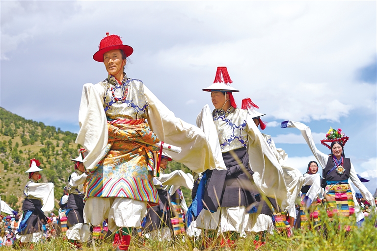 “小時(shí)候,我看見大人們在草地上跳‘熱振曲卓’,舞姿太漂亮了。我不想我的后代只能在書本里看到這個(gè)舞蹈,希望把它傳承下去。”56歲的宗巴為了恢復(fù)“熱振曲卓”表演,于2015年成立了林周“熱振曲卓”傳播有限公司,致力于該舞蹈的傳承保護(hù)。