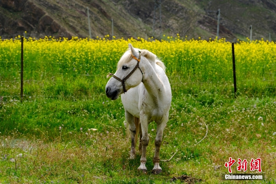 7月24日,西藏堆龍曲沿岸的油菜花田風(fēng)光。