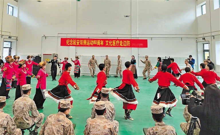 為充分體現(xiàn)對軍人和優(yōu)撫對象的關心關愛,展現(xiàn)西藏雙擁工作的新作為、新面貌,“八一”建軍節(jié)前夕,西藏自治區(qū)雙擁工作領導小組辦公室(以下簡稱“自治區(qū)雙擁辦”)結合“紀念延安雙擁運動80周年”活動,開展了“文化醫(yī)療走邊防”系列活動。這是西藏近年來首次開展的大型綜合性全域性雙擁慰問活動,該活動分別派出7個演出小分隊和7個醫(yī)療小分隊,為全區(qū)7個地市的基層部隊和邊防哨所、退役軍人以及其他優(yōu)撫對象、附近群眾提供巡演巡診服務。