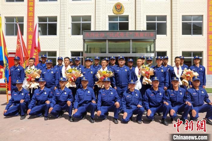 9月23日,參賽隊員載譽歸來,昌都市森林消防支隊熱烈歡迎參加比武指戰(zhàn)員載譽凱旋。“敬禮!”支隊指戰(zhàn)員用鮮花、哈達和熱烈的掌聲迎接凱旋歸來的勇士。