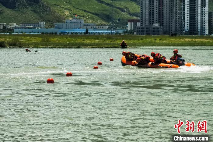 圖為參賽隊員在水域救援比武現(xiàn)場。昌都市森林消防支隊 供圖