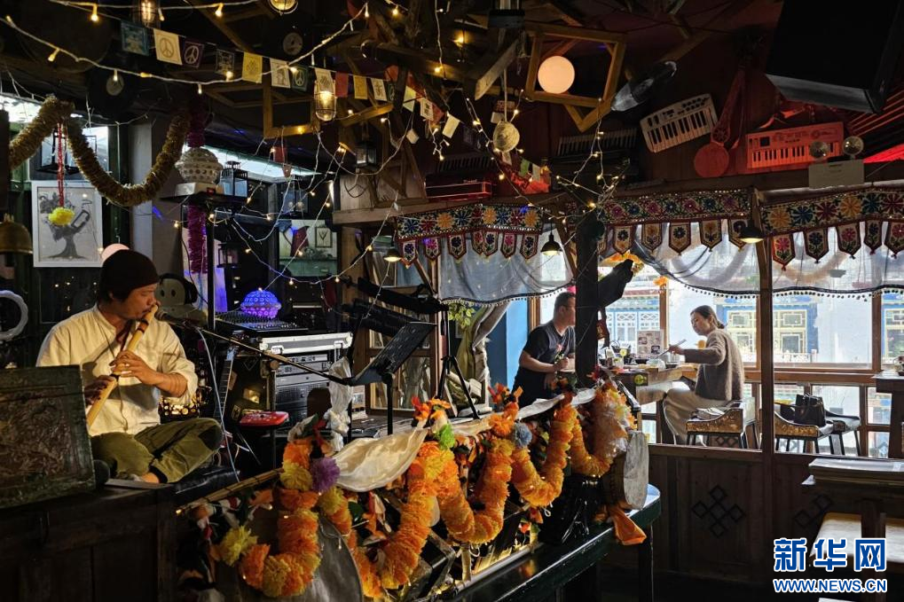 10月19日,游客在拉薩古城區(qū)的一家餐廳。新華網(wǎng) 柑丹鴦琦 攝
