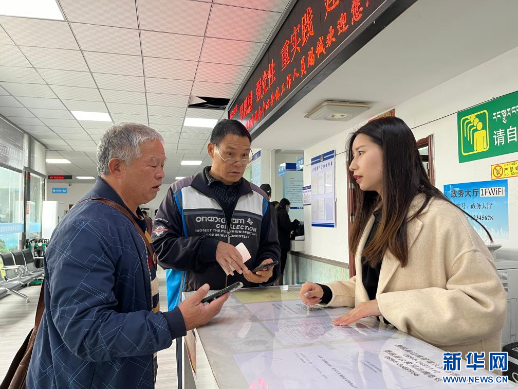 波密縣“無(wú)差別受理綜合窗口”工作人員正在為游客講解辦事流程(10月16日攝)。新華社發(fā)(熊思雅)