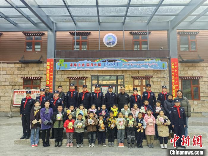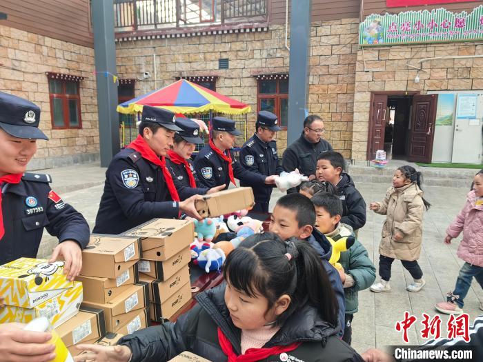 圖為玉麥邊境派出所民警為小朋友們發(fā)放“愛心禮包”。扎西根培 攝