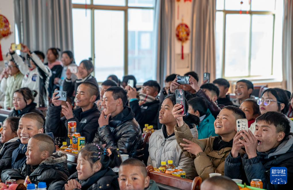 聯(lián)歡會(huì)上,因?yàn)榕臄z需要,我要不斷走動(dòng),但是不管走到哪里,小朋友們都會(huì)把好吃的塞給我。鏡頭對(duì)準(zhǔn)他們的時(shí)候,雖然羞澀,但他們都笑得十分開(kāi)心。