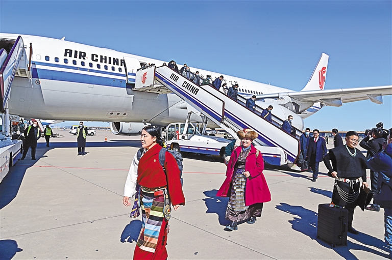 3日下午,出席十四屆全國人大二次會議的西藏全國人大代表、出席全國政協(xié)十四屆二次會議的住藏全國政協(xié)委員乘機抵達首都北京,正式開啟“兩會時間”。