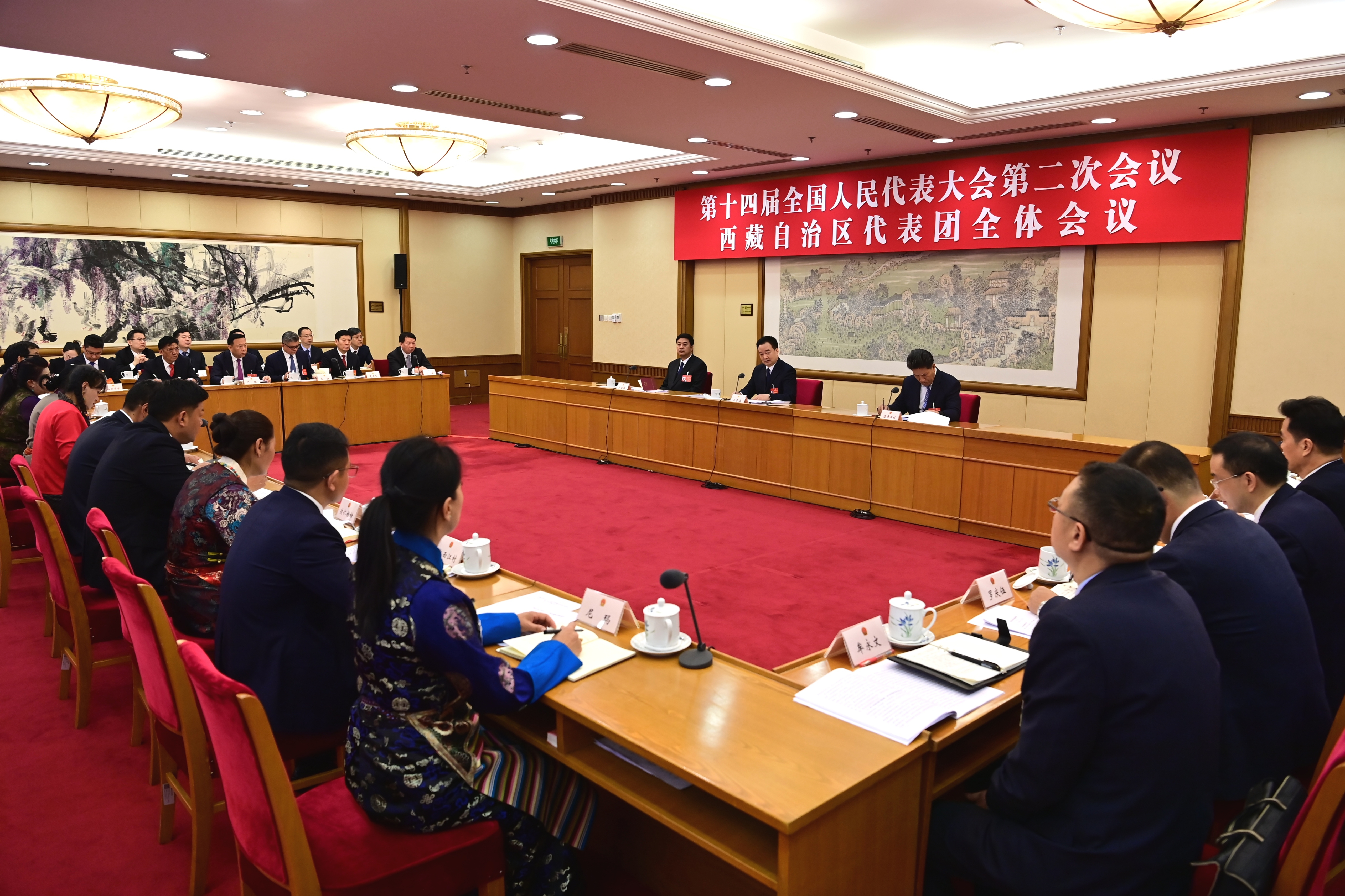 西藏代表團(tuán)審議政府工作報告,西藏代表團(tuán)團(tuán)長、自治區(qū)黨委書記王君正講話。記者 旦增西旦 攝