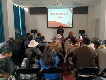 活動(dòng)從上午11時(shí)開始,村民們聚集在村委會(huì)的旗桿下,唱著雄壯的義勇軍進(jìn)行曲,冉冉升起鮮艷的五星紅旗。隨后駐村工作隊(duì)為大家播放了民主改革紀(jì)錄片《跨越》《朗生互助組》。播放結(jié)束后,村里的3名老黨員先后以親身經(jīng)歷講述新舊西藏的深刻變化,教育大家一定要珍惜今天的幸福生活,聽黨話、感黨恩、跟黨走。嘎瑪頓旦今年74歲,是一名老黨員,他身著節(jié)日盛裝,佩戴“光榮在黨50年”紀(jì)念章,自信地向群眾講述,“舊西藏,強(qiáng)白村要給政府上很重的稅,有7戶人家每年還上要交牦牛,日子過得甭提有多苦、多難?,F(xiàn)在政府不收一分錢,每年給大家發(fā)那么多的政策補(bǔ)助,路修通了,房子修得漂亮了,吃的穿的都好,我們都是親眼所見的,所以,沒有理由不感謝共產(chǎn)黨?!?/p>