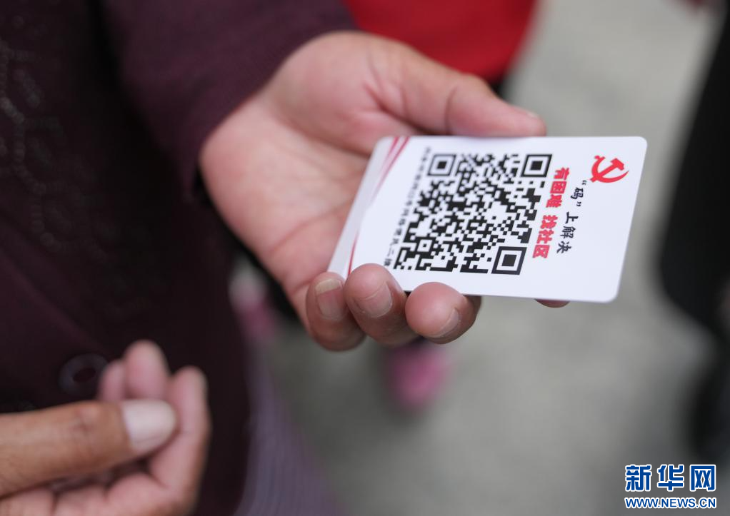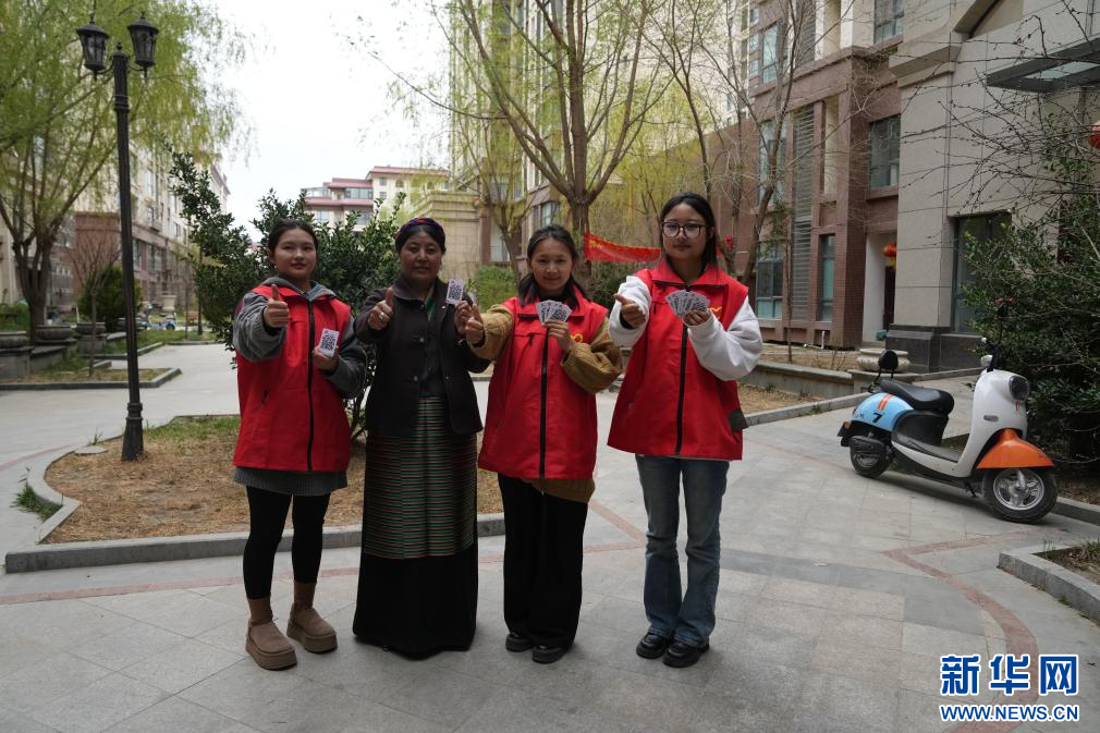 4月2日,納金村居民和工作人員為網(wǎng)格便民二維碼點贊。(新華社記者 晉美多吉 攝)
