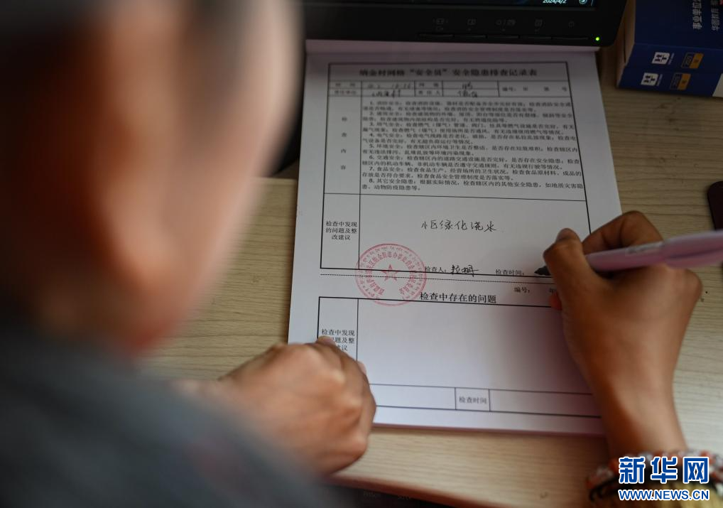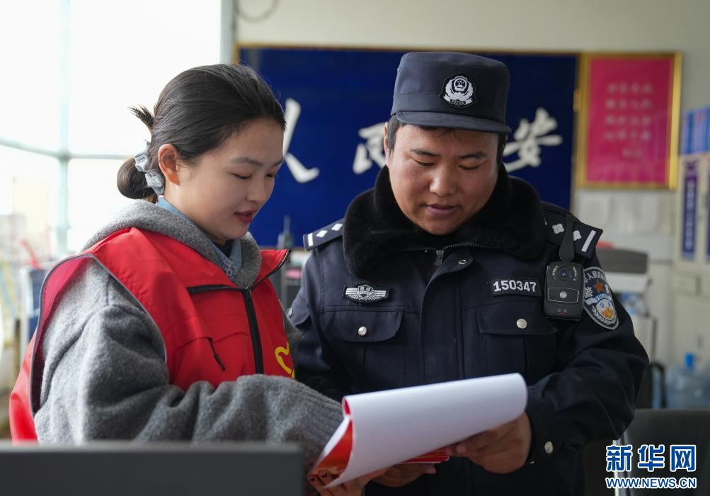 4月2日,納金村工作人員在和轄區(qū)民警對接網(wǎng)格相關工作。(新華社記者 晉美多吉 攝)