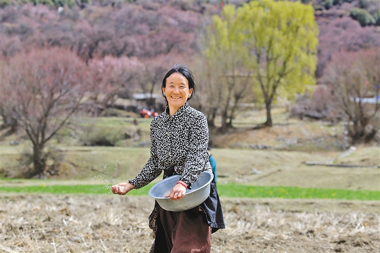 一輛紅色的旋耕機(jī)在田地旁停下來(lái),曲美仁增邊換犁頭,邊感嘆著科技帶來(lái)的便捷:“以前耕地全靠牲畜,費(fèi)時(shí)耗力,現(xiàn)在開著旋耕機(jī)就把地耕完了,聽著這機(jī)器轟隆隆的聲音,我覺得格外開心,好像在說(shuō)我們尼屋的春天特別美,我們的生活肯定也會(huì)更幸福!”