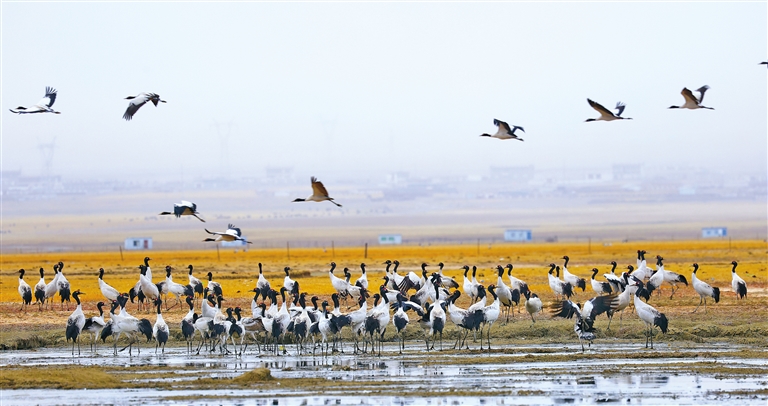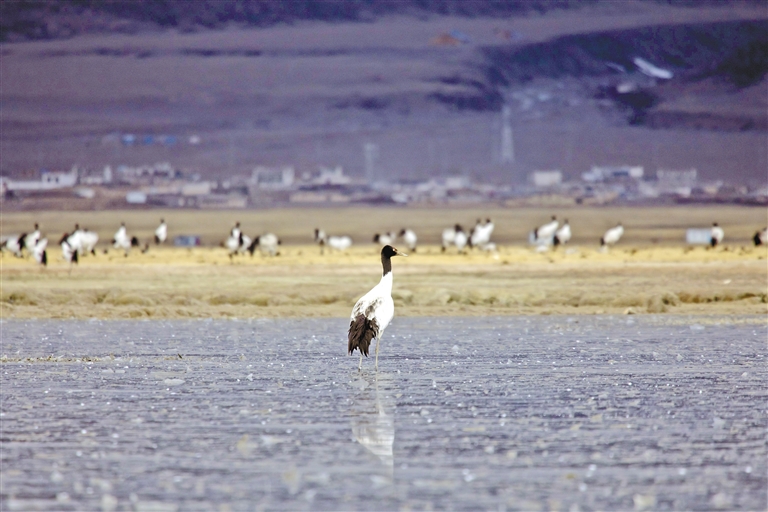 “天路”旁的黑頸鶴。索朗多杰 攝