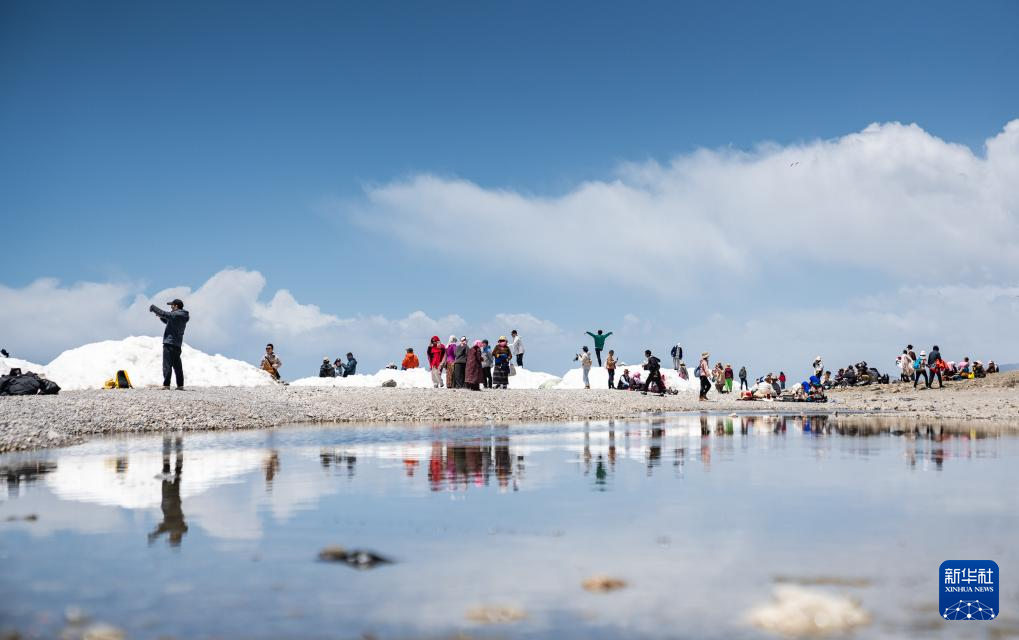 5月19日,游客在納木錯(cuò)湖邊游玩。新華社記者 丁增尼達(dá) 攝