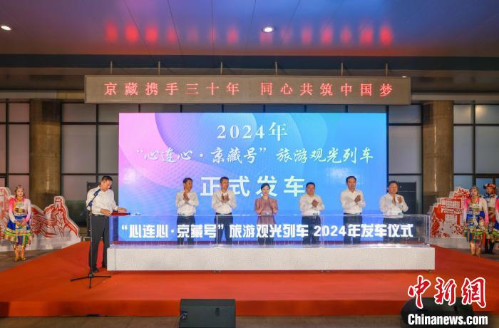 由文化和旅游部、國鐵集團指導,北京援藏指揮部、拉薩市城關區(qū)人民政府等單位組織的2024年“心連心·京藏號”旅游專列在北京西站首發(fā)。
