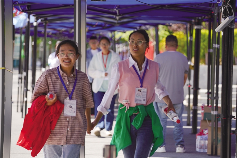 6月7日11時(shí)11分,三位考生同時(shí)走出拉薩中學(xué)考場的大門?!皠傋哌M(jìn)考場時(shí),我還是有一點(diǎn)緊張。但開考后,我的心情就放松下來了,覺得今年語文高考試卷并不是特別難?!笨忌瓮嗉诱f。