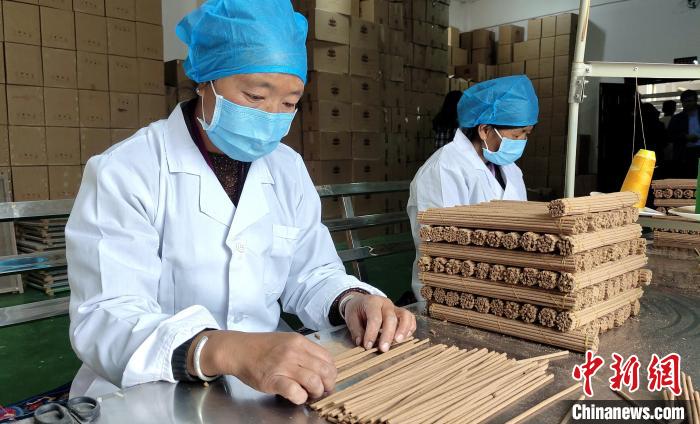“我們農(nóng)閑時(shí)就會來這里制作藏香?!睅孜宦耦^工作的婦女不善言談,但她們數(shù)線香、捆藏香流程十分嫻熟,她們足不出村實(shí)現(xiàn)就業(yè)增收。