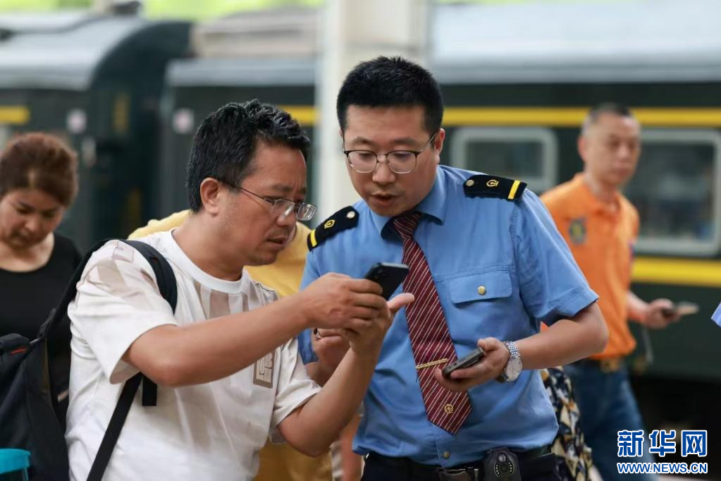 鐵路工作人員正在幫助旅客查看核對乘車信息。(中國鐵路青藏集團(tuán)公司供圖)