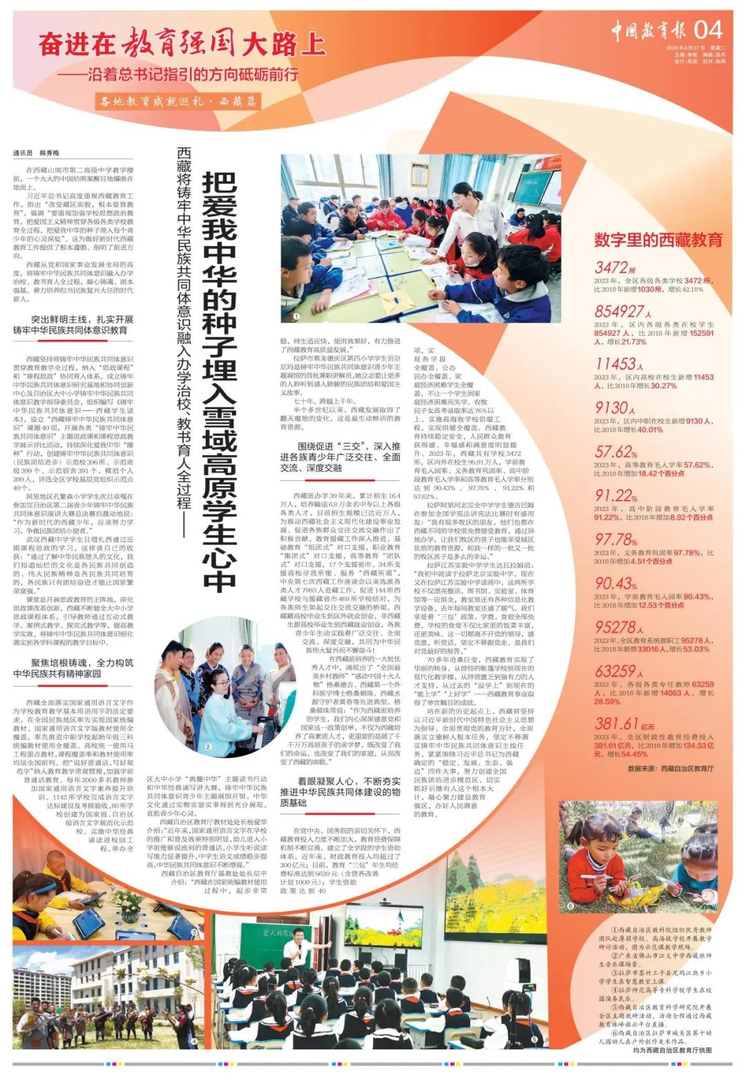 習近平總書記高度重視西藏教育工作,指出“改變藏區(qū)面貌,根本要靠教育”,強調“要重視加強學校思想政治教育,把愛國主義精神貫穿各級各類學校教育全過程,把愛我中華的種子埋入每個青少年的心靈深處”。這為做好新時代西藏教育工作提供了根本遵循、指明了前進方向。