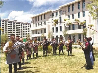拉薩師范高等??茖W校學生在校園演奏民樂。