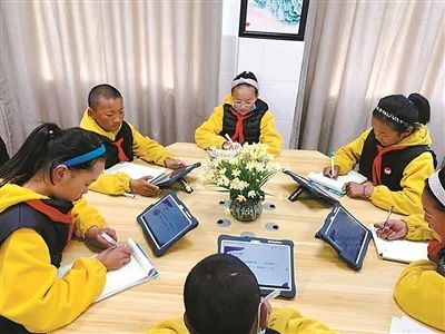 拉薩市墨竹工卡縣尼瑪江熱鄉(xiāng)小學學生在智慧教室上課。