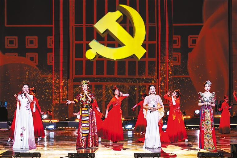 湖南、湖北、安徽三省和中糧集團(tuán)對(duì)口支援山南以來,一批又一批援藏干部人才把山南當(dāng)作第二故鄉(xiāng),與各族人民結(jié)下了跨越山海的深情厚誼。短片《只為你唱的歌》,展示援藏工作者背后的故事和家屬日常生活中的酸甜苦辣。情境合唱《追風(fēng)趕月的人》,是一場為所有援藏工作者精心設(shè)計(jì)的特別演出,他們的家屬共同帶來了一首溫情之歌,送出了家屬們對(duì)援藏工作者的堅(jiān)定支持和無盡的愛。女子群舞《格桑芙蓉并蒂開》,展現(xiàn)了湖南、山南兩地人民心手相牽的美好畫面?!俺礁杞o黨聽,我把黨來比母親……”山南市三小格?;ê铣獔F(tuán)孩子們的聲音直抵人心,隨后湖南、湖北、安徽和山南的歌手們共同唱響《唱支山歌給黨聽》。