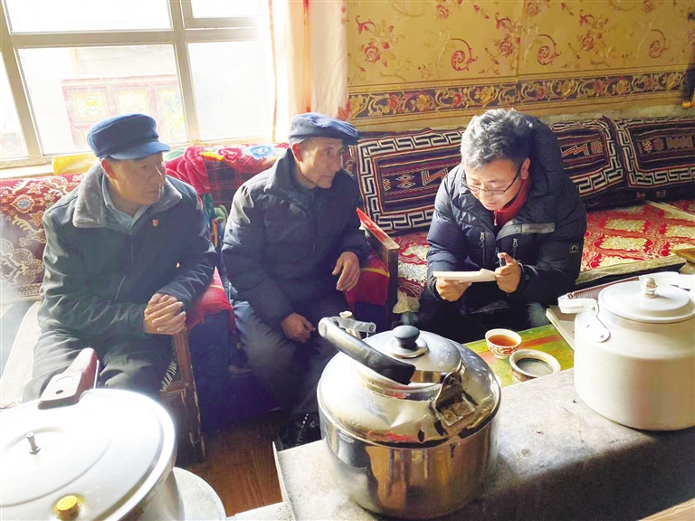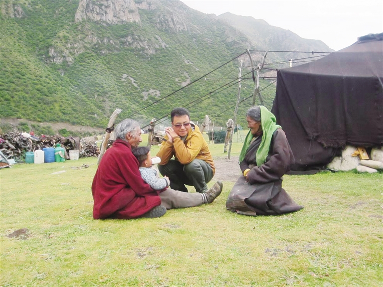 旦增頓珠作為隊長和第一書記,一邊努力克服高反給自身帶來的不適,一邊幫助隊員調(diào)整心態(tài)、適應環(huán)境,并主動挑起了照顧大家的重擔——到草場上撿牛糞取暖,到小河溝破冰挑水,研究如何用高壓鍋做飯。他的付出,隊員們看在眼里、記在心里,在旦增頓珠的帶領(lǐng)和鼓舞下,隊員們很快適應了高原的生存環(huán)境,隨即投入到走訪和調(diào)研工作中。