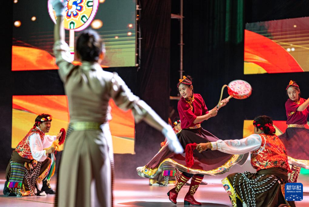 拉薩阿里河北完全中學(xué)的學(xué)生在表演節(jié)目(9月25日攝)。新華社記者 丁增尼達 攝
