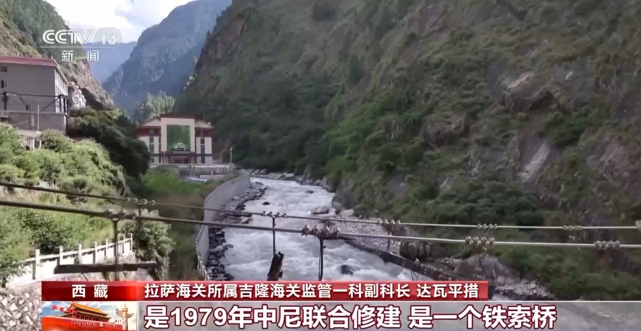 拉薩海關所屬吉隆海關監(jiān)管一科副科長 達瓦平措:我們所在的是第四代熱索橋。2015年尼泊爾“4.25地震”,吉隆口岸也是受災比較嚴重,然后在第三代的原址基礎上建了第四代橋。對我們人員往來、貿易往來發(fā)揮了重要作用。
