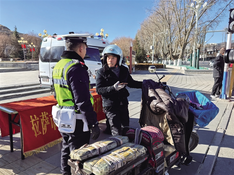 檢查過(guò)程中,民警還在部分重要交通路口和人員密集區(qū)域設(shè)立交通安全宣傳點(diǎn)位,搭建展板,向過(guò)往的市民和電動(dòng)車(chē)駕駛者告知超標(biāo)電動(dòng)車(chē)禁止上路的原因,講解超標(biāo)電動(dòng)車(chē)退市處理相關(guān)流程,讓廣大市民群眾更直觀地了解騎乘超標(biāo)電動(dòng)車(chē)出現(xiàn)交通事故的嚴(yán)重后果,強(qiáng)調(diào)遵守交通法規(guī)和佩戴安全頭盔等行為的重要性。拉薩市民曲女士告訴記者:“聽(tīng)了交警宣講的交通安全知識(shí),我覺(jué)得很有意義,以后我會(huì)自覺(jué)遵守交通規(guī)則,確保出行安全。”