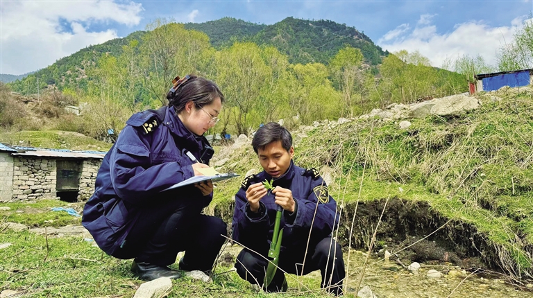 拉薩海關所屬吉隆海關關員開展國門生物安全監(jiān)測。圖由拉薩海關提供