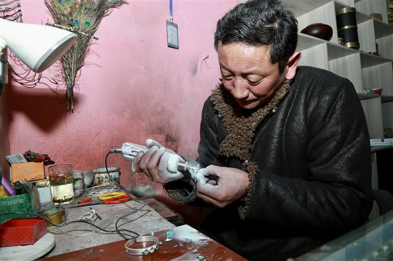 此時(shí),一位顧客走進(jìn)店內(nèi):“你好,我現(xiàn)在定做阿吉祖玉首飾大概什么時(shí)候能完成呀?”顧客滿懷期待地問道?!艾F(xiàn)在訂單比較多,不過您放心,在藏歷新年前肯定能完成。”次央多吉熱情地回應(yīng)道。