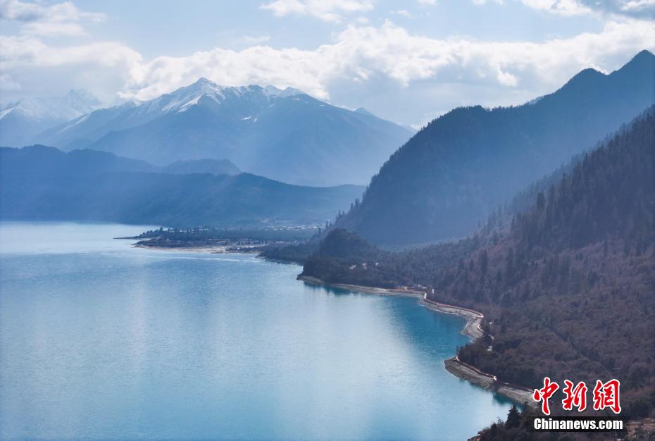 3月30日,航拍巴松措春日風景。巴松措又名錯高湖,位于西藏自治區(qū)林芝市工布江達縣,是西藏首個自然風景類國家5A級旅游風景區(qū)。從空中俯瞰巴松措,碧藍的湖水被雪山、森林環(huán)繞,宛如鑲嵌在群山間的“藍寶石”。(無人機照片)中新社記者 馬銘言 攝