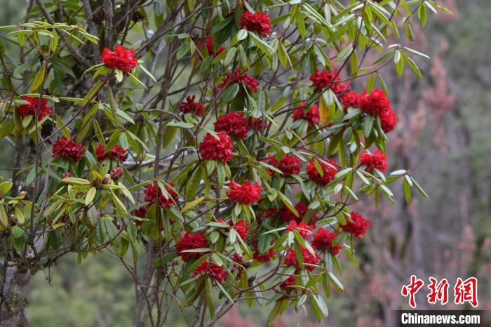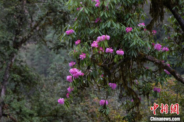 4月3日,西藏自治區(qū)林芝市波密縣野生杜鵑盛放,漫山遍野,匯成夢幻花海。這里品種多樣,有波密杜鵑、淡鐘杜鵑等。花朵色彩繽紛,粉紅嬌俏、玫紅熱烈、朱紅明艷、淺紫神秘。它們廣泛分布于山坡、河谷、森林,與雪山、溪流相互映襯,勾勒出絢麗的春日盛景 。中新社記者 貢嘎來松 攝