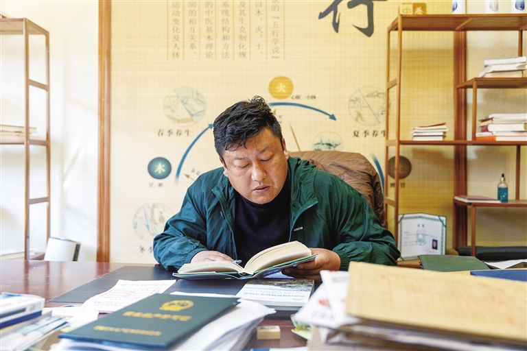 洛桑英巴抽空學(xué)習(xí)生態(tài)修復(fù)知識(shí)。記者 桑旦歐珠 攝