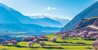 東風(fēng)著意,先上小桃枝。每年3月至4月,被稱為“雪域江南”的西藏自治區(qū)林芝市,就成了桃花的海洋。奔流的江水邊,碧綠的青稞地里,高聳的雪山下,一樹樹嫣紅如醉霞緋云般開放。不遠(yuǎn)處云杉林蒼翠茂密,山頂潔白的積雪平添了清幽。當(dāng)大自然再次將繽紛色彩傾瀉而下,高原的春天便如約而至。