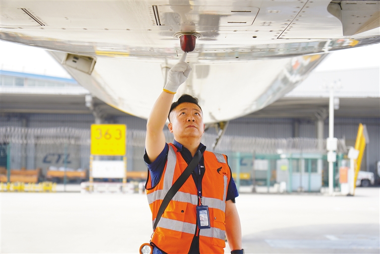 “因?yàn)槲业募亦l(xiāng)挨著機(jī)場,從小就看著飛機(jī)起起落落。后來知道有飛機(jī)維修這個(gè)行業(yè),覺得能親手保障每一架飛機(jī)的安全飛行,是件多么有意義的事情,就一頭扎進(jìn)了這個(gè)行業(yè)?!闭劶芭c飛機(jī)維修的緣分,何濤眼中閃著光。