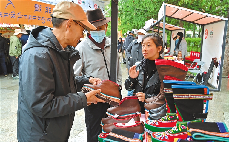 近日,“雪域古城·圣地拉薩”文化旅游節(jié)非遺主題活動(dòng)在拉薩宗角祿康公園內(nèi)開展,現(xiàn)場(chǎng)人潮涌動(dòng)。非遺藏戲演員身著華服,以高亢唱腔演繹《朗薩雯蚌》選段,觀眾圍坐沉浸于雪域藝術(shù)魅力。非遺展銷區(qū)陳列著木雕、牛皮制品等傳統(tǒng)手工藝品?;顒?dòng)全面展現(xiàn)了非遺保護(hù)傳承與利用的新進(jìn)展和新成效。