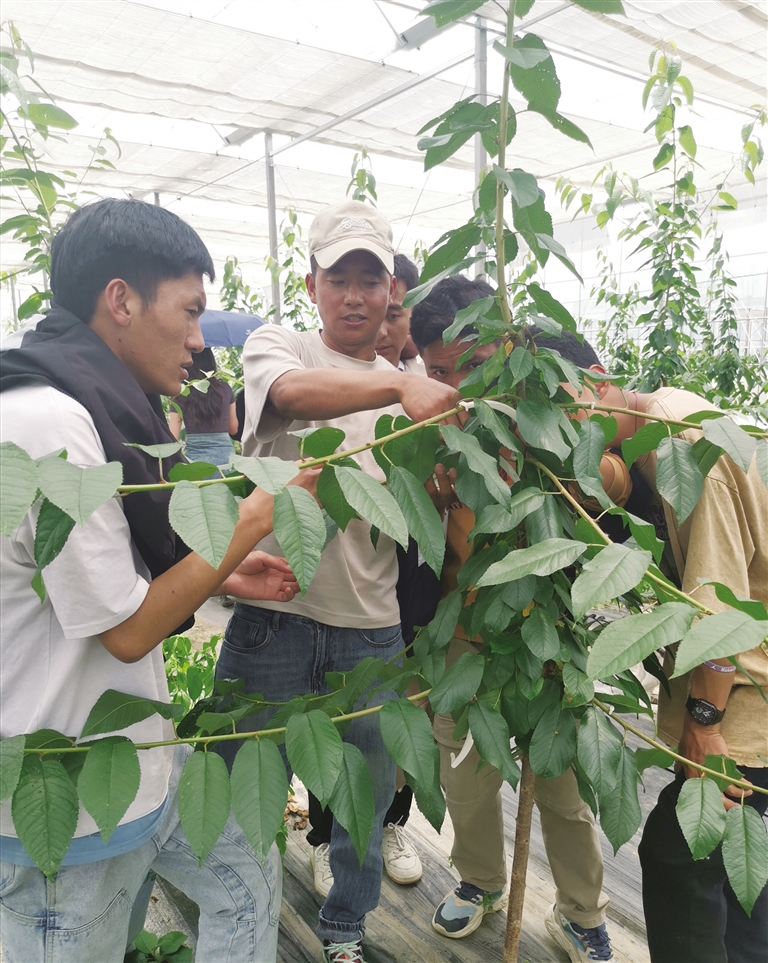 那段時間,他查閱了大量資料,進行了多次實地調(diào)研,提出了引進山東、陜西等地品質(zhì)高、產(chǎn)量好且抗病蟲害果樹的想法。他解釋道:“引進這些品種,一方面可以大大降低病蟲害的風(fēng)險,提高產(chǎn)量和品質(zhì)。另一方面,通過研究水果本身的生長規(guī)律,選擇不同的品種進行合理配置,能達到相互促進的效果。”經(jīng)過一段時間的試種,格桑群培的想法取得了顯著成效,得到了大家的高度贊譽。