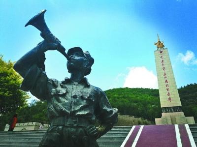 位于陜西延安吳起縣的中央紅軍長征勝利紀念園內的雕塑和紀念碑。光明圖片