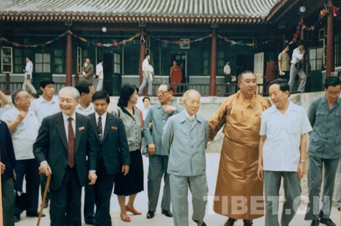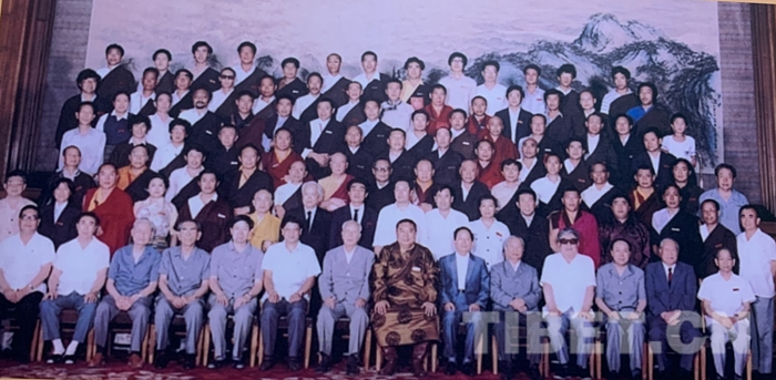 圖為參加中國藏語系高級佛學(xué)院成立大會的全體領(lǐng)導(dǎo)與師生合影。