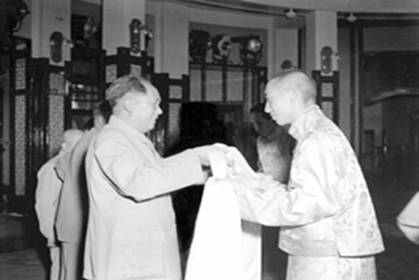 1951年4月,中央人民政府全權代表同西藏地方政府全權代表在北京就和平解放西藏事宜進行談判。5月23日,中央人民政府同西藏地方政府簽訂了《關于和平解放西藏辦法的協(xié)議》(簡稱“十七條協(xié)議”)。24日,為慶?!笆邨l協(xié)議”的簽訂,毛澤東主席舉行盛大宴會,十世班禪及班禪堪布會議廳主要負責官員參加了宴會。