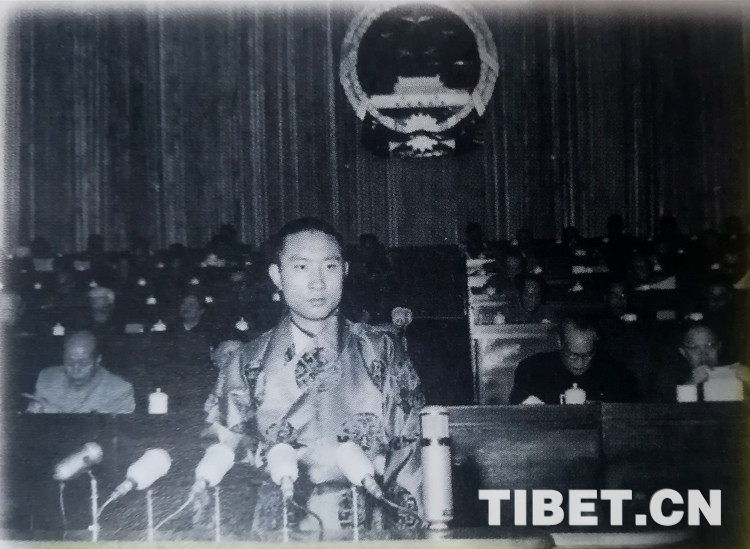 圖為1959年4月,十世班禪大師在第二屆全國人民代表大會(huì)第一次會(huì)議上發(fā)言。(圖片翻拍自《第十世班禪額爾德尼評傳》)