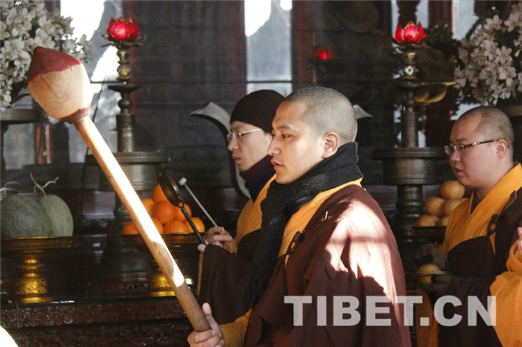 中國(guó)西藏網(wǎng)訊 今年適逢中國(guó)佛教協(xié)會(huì)名譽(yù)會(huì)長(zhǎng)十世班禪大師圓寂30周年,1月28日上午9時(shí),中國(guó)佛教協(xié)會(huì)及在京直屬寺院法師、工作人員、首都善信居士齊聚北京廣濟(jì)寺,隆重舉行紀(jì)念十世班禪大師圓寂30周年法會(huì),深切緬懷十世班禪大師。法會(huì)禮請(qǐng)中國(guó)佛教協(xié)會(huì)演覺副會(huì)長(zhǎng)、宗性副會(huì)長(zhǎng)、祜巴等傣副會(huì)長(zhǎng)主法,宏度副秘書長(zhǎng)主持紀(jì)念儀式。三位法師拈香主法,帶領(lǐng)僧眾莊重誦經(jīng),圓滿完成法會(huì)儀軌。
