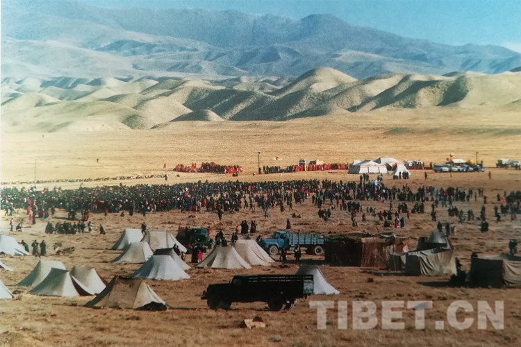 圖為渴盼得到十世班禪大師摩頂?shù)娜罕姳燃缃吁啵瑓R聚草場(chǎng),恭候那一幸福的時(shí)刻。