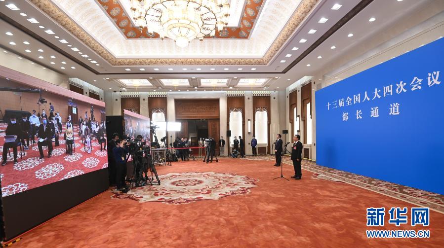 3月5日,第十三屆全國人民代表大會第四次會議舉行首場“部長通道”采訪活動。這是記者在分會場通過網(wǎng)絡視頻方式采訪國家發(fā)展和改革委員會主任何立峰。新華社記者 曹燦 攝